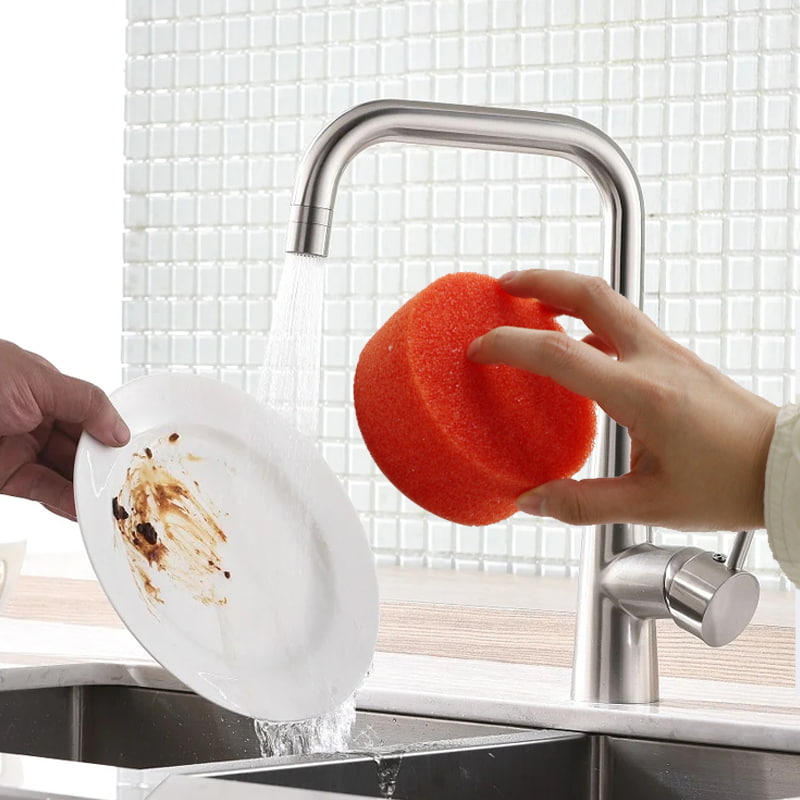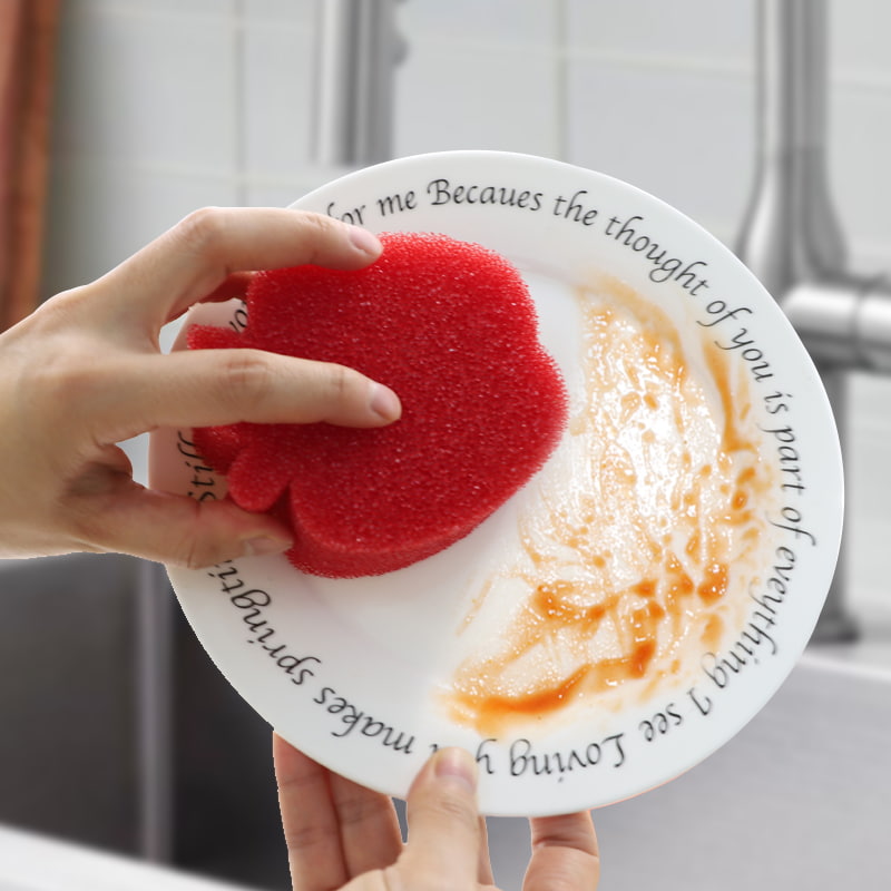 Ilık suya maruz kaldığında yumuşar: Su sıcaklığı 32°C'nin üzerinde olduğunda sünger hızla yumuşar ve hassas yüzeyleri (yapışmaz tencere kaplamaları, cam eşyalar, meyveler gibi) nazikçe temizleyerek çizilmeleri önleyebilir.